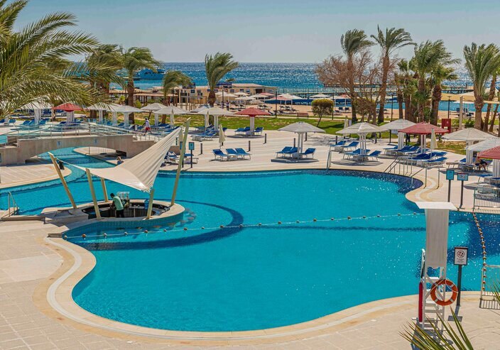 Amarina Abu Soma Resort & Aquapark empfängt Euch direkt am privaten Sandstrand von Abu Soma in der Soma Bay. Weitläufige Pools, ein eigener Aqua Park und vielfältige Restaurants strukturieren Eure Tage angenehm. Familien finden klare Strukturen mit Miniclub und Kinderbereichen, Strandferien-Fans schätzen die kurze Distanz zum Wasser. Highlight: Direktlage am Strand mit großem Aqua Park.