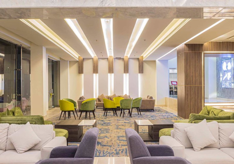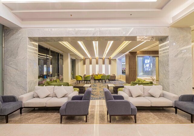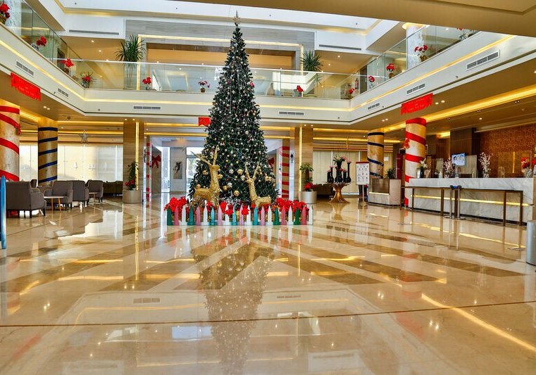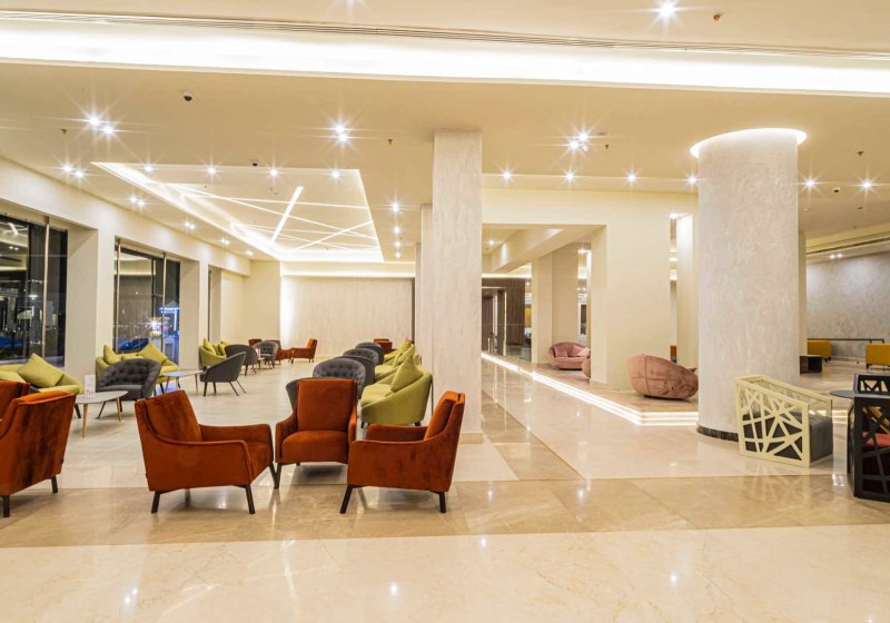 Rezeption und Lobbybar strukturieren den Ankunftsbereich; Minimarkt, Boutique, Juwelier und Apotheke decken Alltagsbedürfnisse. Friseur, Wäschereiservice und Concierge-Services runden das Bild ab. Liegen, Schirme und Badetücher stehen an Pool und Strand bereit. Highlight: Durchdachte Ausstattung für unkomplizierte Tage in den Ferien.