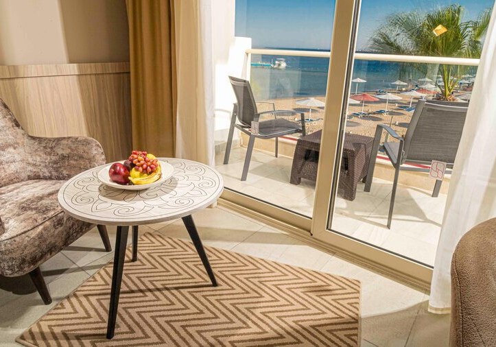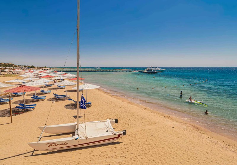 Direkt am hoteleigenen Sandstrand von Abu Soma gelegen, erreicht Ihr das Meer in wenigen Schritten; der Strandabschnitt misst rund 200 Meter. Das Zentrum von Safaga liegt rund 5 Kilometer entfernt, der Flughafen Hurghada etwa 52 Kilometer. Highlight: Strandfirst-Lage mit klaren Distanzen für unkomplizierte Planung.