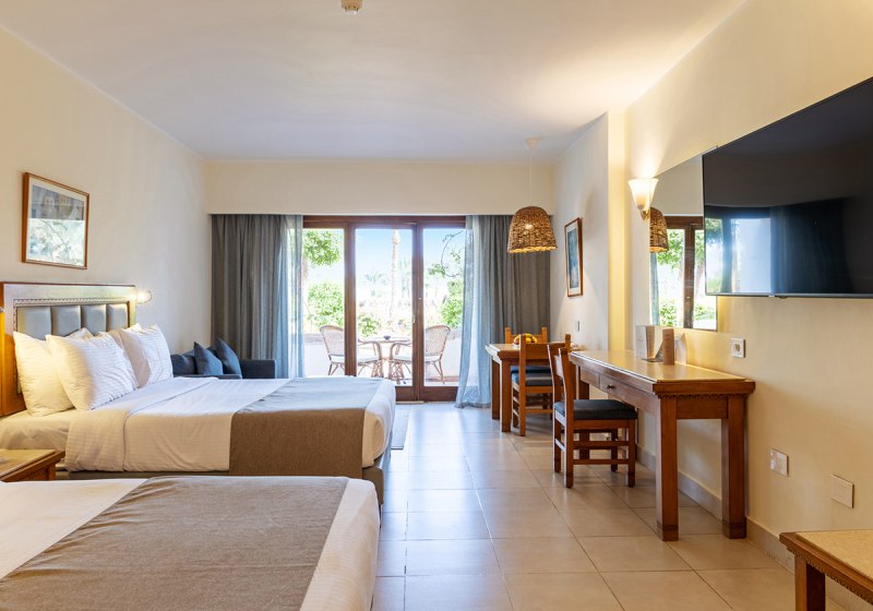 - Direkt am Strand: Unmittelbare Sandstrandlage an der Makadi Bay mit kurzer Wegeführung.