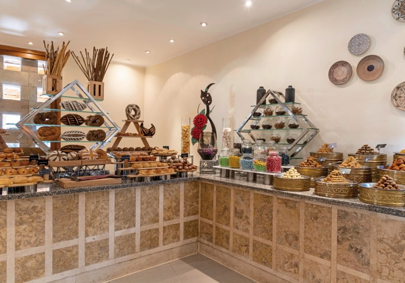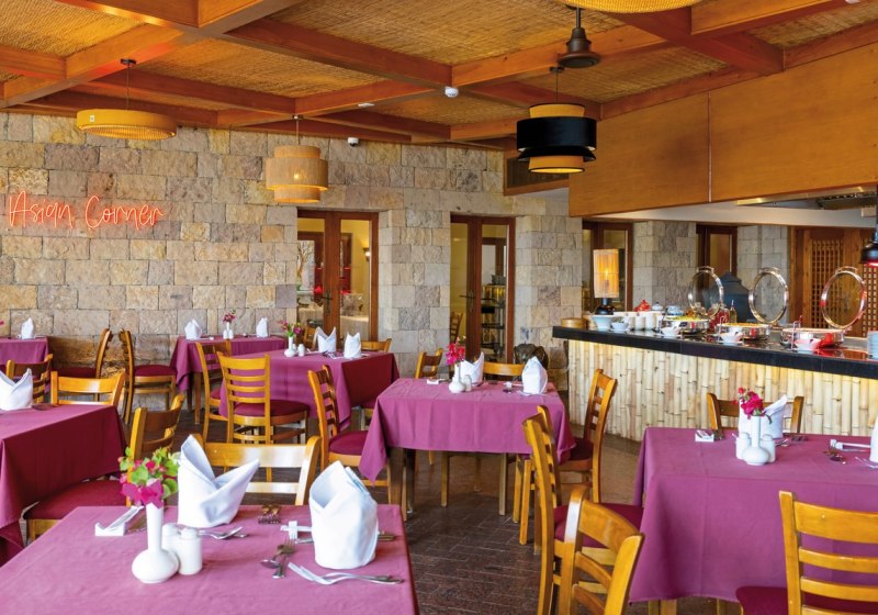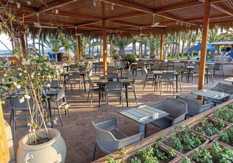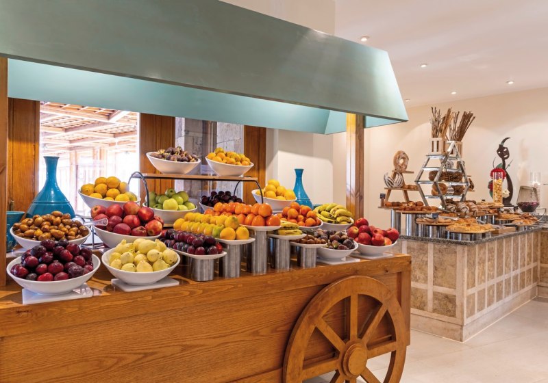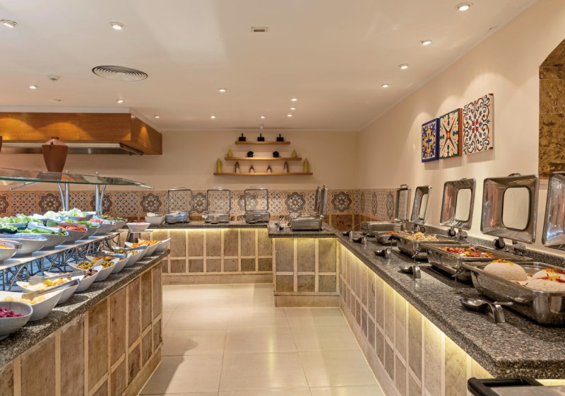 Rund um Lobbybar Red Rocks, Sunset Bar, Lobby Bar und Windbreaker Bar verteilt sich die Tages- und Abendkultur der Drinks. All-Inclusive und All-Inclusive Plus sind verfügbar, inklusive alkoholfreier und alkoholischer Angebote sowie Snacks. Highlight: Buffet mit Live-Kochen und zwei À-la-carte-Restaurants sorgt für Abwechslung.