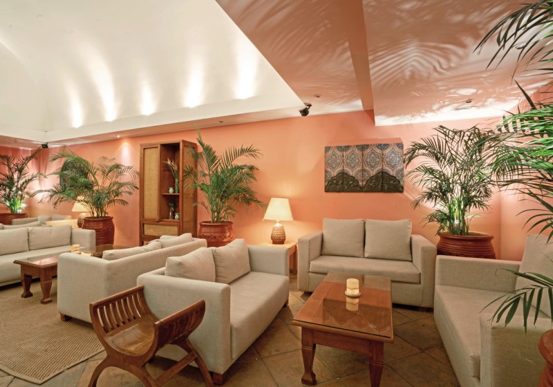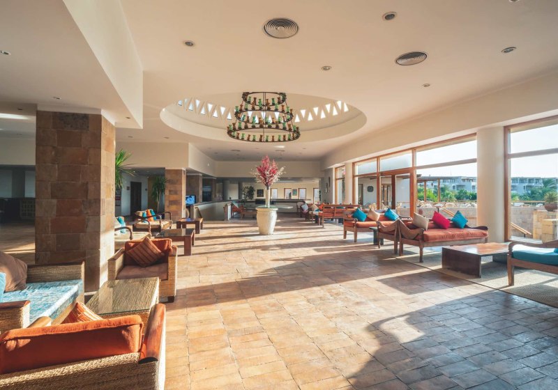 Im Zentrum stehen Rezeption mit 24-Stunden-Service, Lifts und verschiedene Geschäfte. Ihr findet darüber hinaus Bibliothek, Gartenflächen, Sonnenterrassen, Poolbar, Supermarkt und einen gut strukturierten Empfangsbereich. Kreditkarten Visa und Mastercard werden akzeptiert. Highlight: Durchdachte Infrastruktur mit vielen Sitz- und Wegeflächen für entspannte Abläufe.