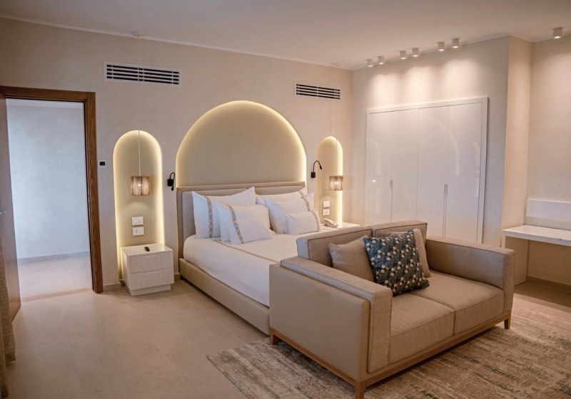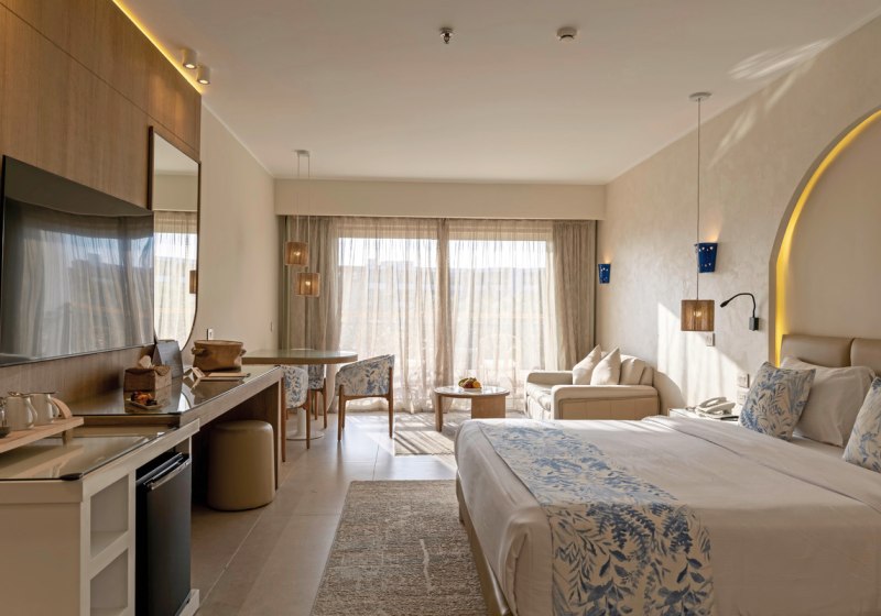Die Villen setzen mit separatem Schlafzimmer und Wohnzimmer, direktem Poolzugang (im Winter beheizbar) und Sonnenterrasse klare Akzente. Dazu kommen Regendusche, LCD-TV mit internationalen Sendern, täglich aufgefüllte Minibar, Tee- und Kaffeezubereitung sowie kostenfreies WLAN. Highlight: Adults-only Optionen in Westbay und den Villen für ruhige Rückzugszeiten.