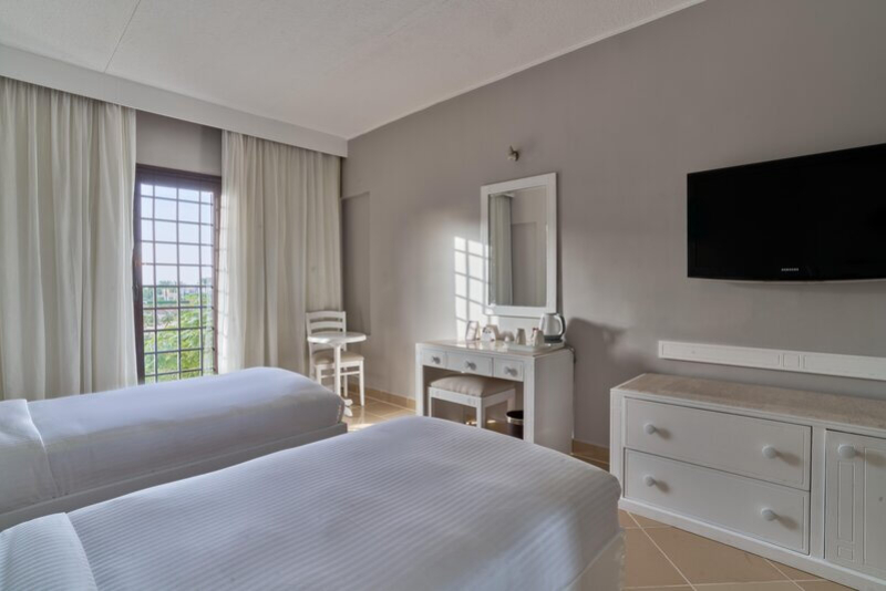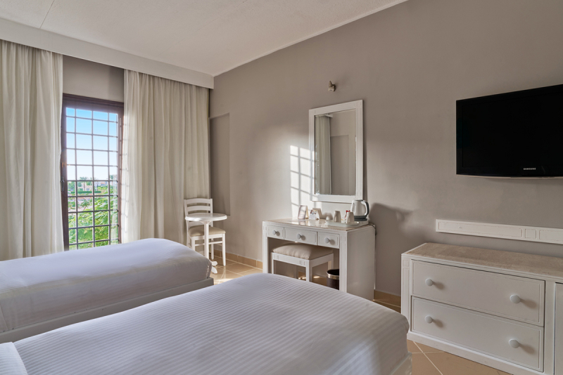 Das Hotel ist komfortabel und freundlich eingerichtet und bietet zahlreiche Annehmlichkeiten, darunter WLAN in allen Bereichen, eine Diskothek im Außenbereich, Geschäfte, einen Souvenirshop, einen Bankautomaten und Wäsche- und Bügelservice. Zudem gibt es eine großzügige Außenanlage mit einem weitläufigen Aquapark und sieben Swimmingpools.