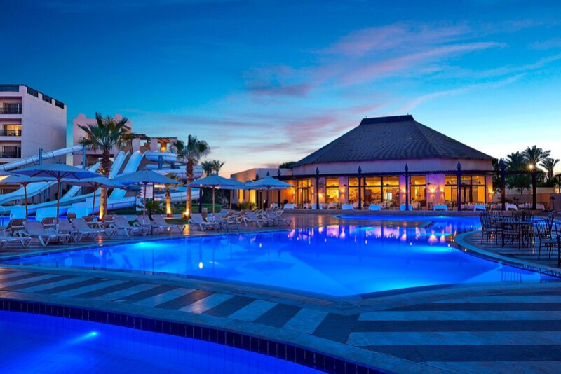 Das Hotel Steigenberger Aqua Magic glänzt mit seiner idealen Lage. Der hoteleigene Sandstrand ist nur 400 Meter entfernt. Es ist 6 km vom Hurghada International Airport und 5 km vom Stadtzentrum entfernt.