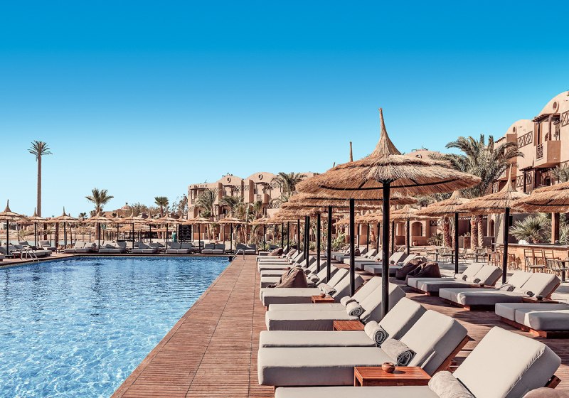 Mit 144 Zimmern, Haupt- und Nebengebäude und einem im Winter beheizbaren Pool bleibt die Anlage überschaubar. Live-Musik am Abend setzt einen feinen Akzent. Nachhaltigkeitsmaßnahmen sind umfassend verankert, von Recycling bis zu lokal erzeugten Lebensmitteln. Hier genießt Ihr stilvolle Gelassenheit, nah an El Gounas Leben und doch angenehm zurückgezogen.