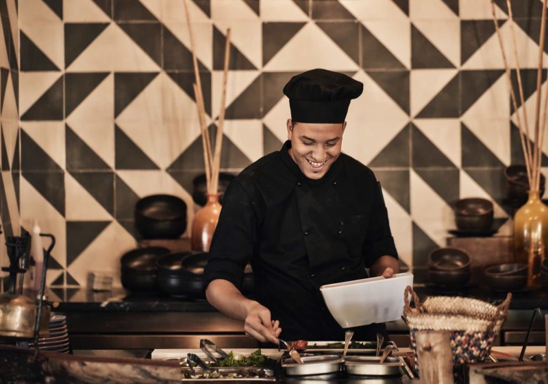 Der Rhythmus des Hauses ist bewusst gelassen. Live-Musik setzt abends den Ton und fügt sich in die offene Architektur an Wasser und Pool. Ohne lautes Programm bleibt Raum für Gespräche, ein Glas an der Bar und den Blick über die Lagune, der den Abend sanft ausklingen lässt.