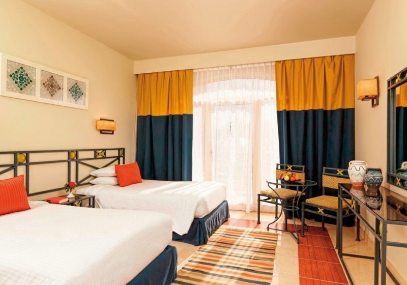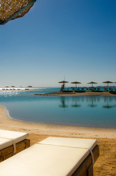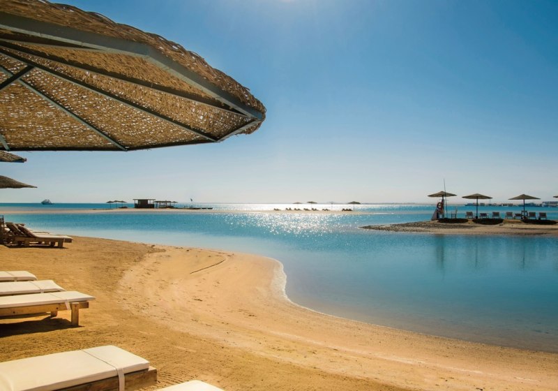 Ihr residiert in El Gouna an der ägyptischen Rotmeer-Küste, mit privatem Sandstrand direkt vor der Tür. Das Ortszentrum mit Yachthafen erreicht Ihr in etwa zehn Fahrminuten, Hurghada und der Flughafen liegen rund 40 Fahrminuten entfernt. Highlight: Überschaubare Distanzen zu Zentrum und Marina erleichtern Eure Tagesplanung.