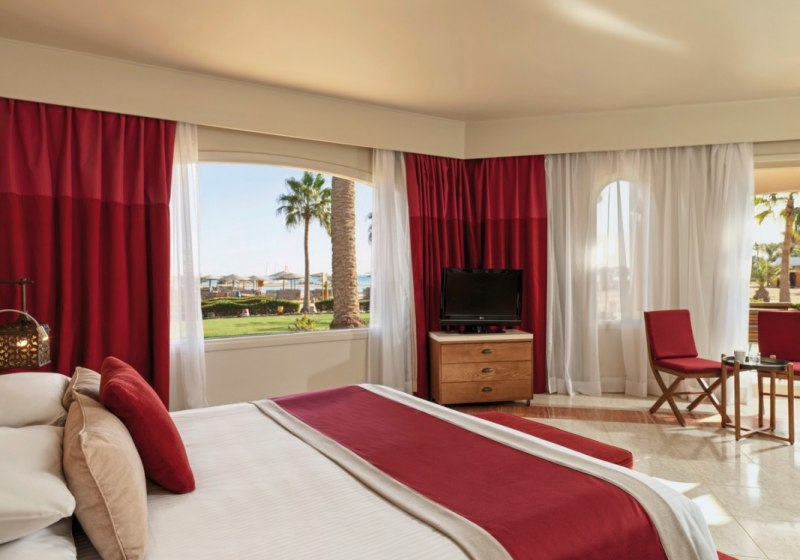 Wer das Wasser liebt, findet Tauchen und Schnorcheln am Roten Meer, ergänzt durch Segeln, Kitesurfen, Windsurfen und weitere Aktivitäten. An Land runden Boccia, Gymnastik und ein naher Golfplatz das Spektrum ab. So bleibt Ihr flexibel zwischen Intensität und Leichtigkeit. Highlight: Breites Wassersportfeld direkt am Hotelstrand.