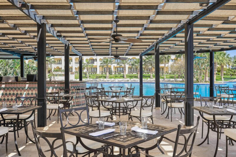 Das Steigenberger ALDAU Beach Hotel bietet ein All-Inclusive-Konzept, das neben Frühstück, Mittag- und Abendessen auch Kaffee und Kuchen am Nachmittag, einen Nachmittagssnack sowie Eis und Mitternachtssnack umfasst. Zudem sind ausgewählte lokale alkoholische und alkoholfreie Getränke rund um die Uhr inklusive. Die Gäste können aus insgesamt sieben Restaurants wählen, davon ein Buffetrestaurant und sechs À-la-carte-Restaurants mit u.a. orientalischer, asiatischer und mediterraner Küche. Dazu kommen fünf Bars und zwei Cafés.Ausstattung
