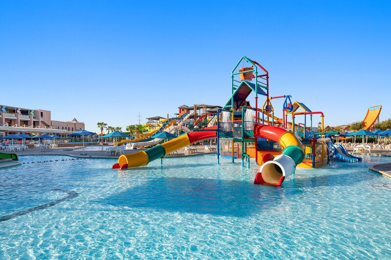 Pickalbatros Alf Leila Wa Leila Resort liegt in Hurghada nahe dem Sandstrand Dana Beach, erreichbar per Shuttlebus. Die Anlage im Stil eines orientalischen Dorfes schafft eine lebhafte, familienfreundliche Atmosphäre mit Wasserpark und weitläufigen Poolbereichen. Highlight: Strandnahes Resort mit Shuttle, Kinderpool und Wasserrutschen für entspannte Strand-Reise.