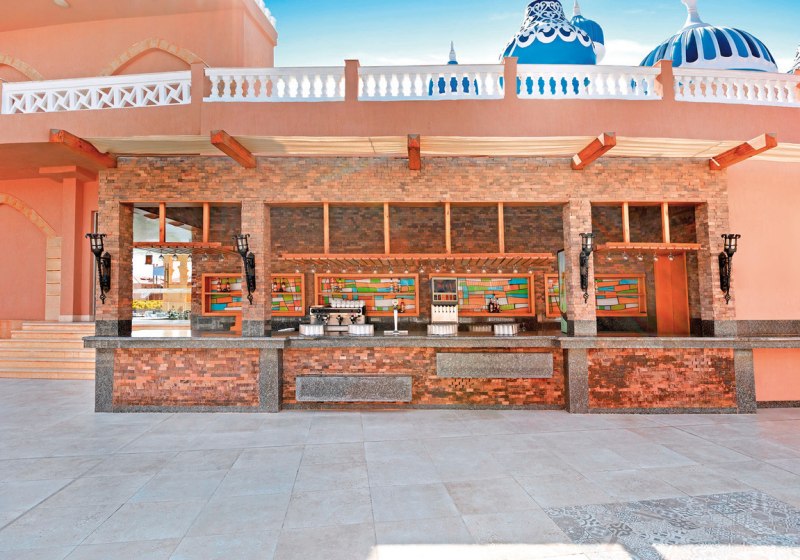 Empfangshalle mit Rezeption, Boutiquen, Bankautomat, Apotheke und Friseur strukturieren die öffentlichen Bereiche. Sieben Pools, Sonnenterrassen sowie Liegen und Schirme am Pool und Strand sorgen für Komfort. Highlight: Strandzugang per hoteleigenem Shuttle mit bereitgestellten Liegen und Schirmen.