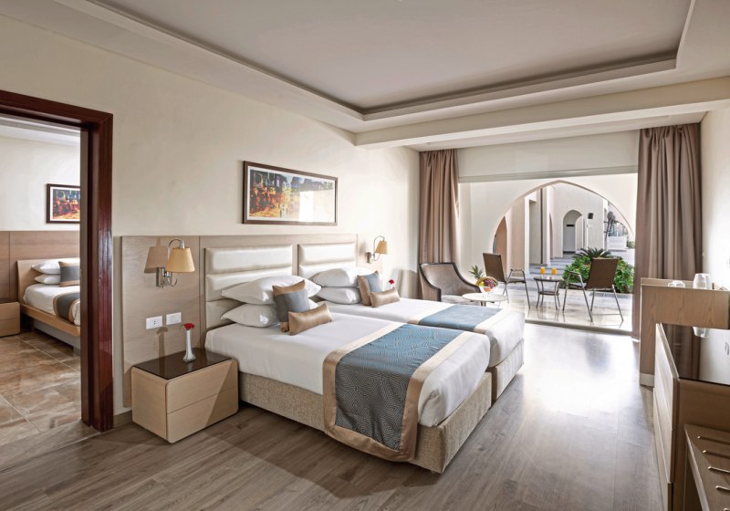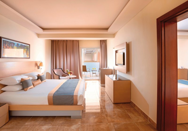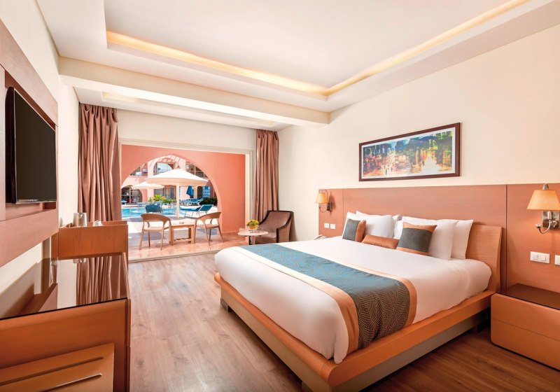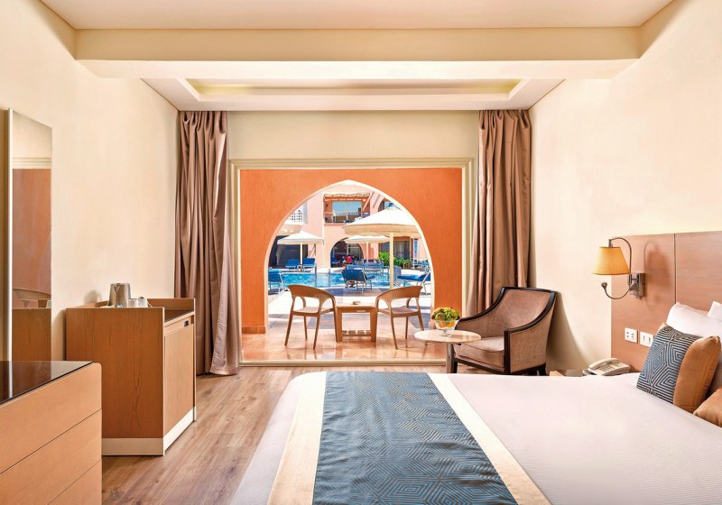 Ihr urlaubt in Hurghada, mit direkter Anbindung an Geschäfte und Restaurants in der Umgebung. Der Sandstrand von Dana Beach liegt etwa 900 Meter entfernt und wird bequem per Shuttlebus erreicht. Bis ins Zentrum von Hurghada sind es rund 17 Kilometer, die Lage bietet damit Ruhephasen im Resort und Zugriff auf die städtischen Angebote. Die Nähe zum Flughafen erleichtert die An- und Abreise. Am Strand warten Liegen und Schirme sowie Wassersportangebote lokaler Anbieter, während die Infrastruktur des Resorts kurze Wege zu Pools, Bars und Restaurants sicherstellt. So kombiniert Ihr Badezeit, Ausflüge nach Hurghada und spontane Einkehrmöglichkeiten ohne lange Transfers.