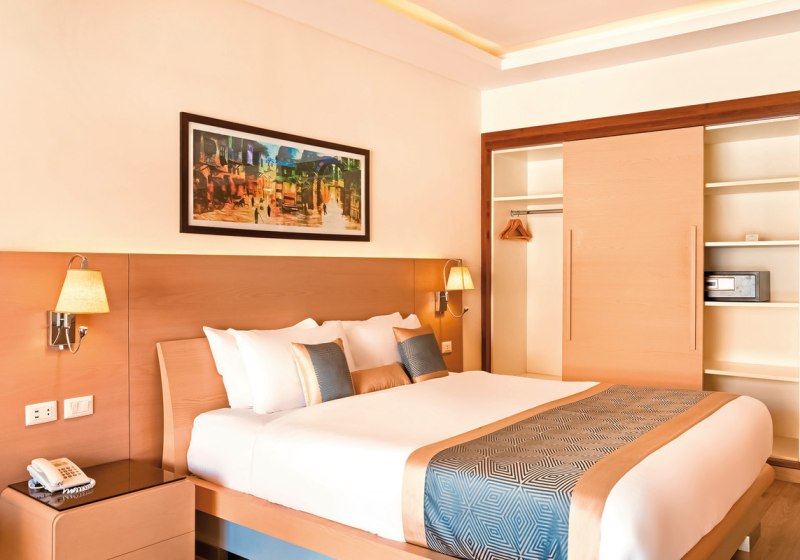 Im Bad erwartet Euch eine Dusche mit Haartrockner und Kosmetikartikeln. Für den ersten Kaffee stehen Kaffee-/Teezubereiter bereit. Unterschiedliche Bettoptionen von Twin- bis Queensize-Formaten decken verschiedene Bedürfnisse ab, Zustell- und Kinderbetten sind vorgesehen. Mit Balkonplätzen Richtung Pool oder Garten habt Ihr am Abend kurze Wege zu Bars und dennoch Euren privaten Rückzugsraum.