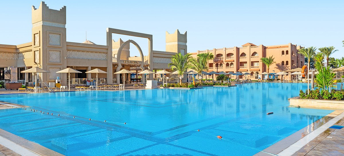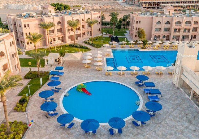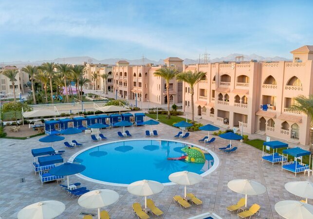 Ihr wohnt in Hurghada an der Safaga Road, mit direkter Anbindung an die Strände der Region. Ein Shuttle bringt Euch zum Strandabschnitt des Beach Albatros, wo Liegen, Sonnenschirme und eine Strandbar bereitstehen. Der Flughafen liegt etwa 7 Kilometer entfernt, das Zentrum von Hurghada rund 15 Kilometer. Zum Meer beträgt die Distanz etwa 700 Meter. Highlight: Bequemer Strandzugang per Shuttle mit klaren Distanzen und Orientierung.