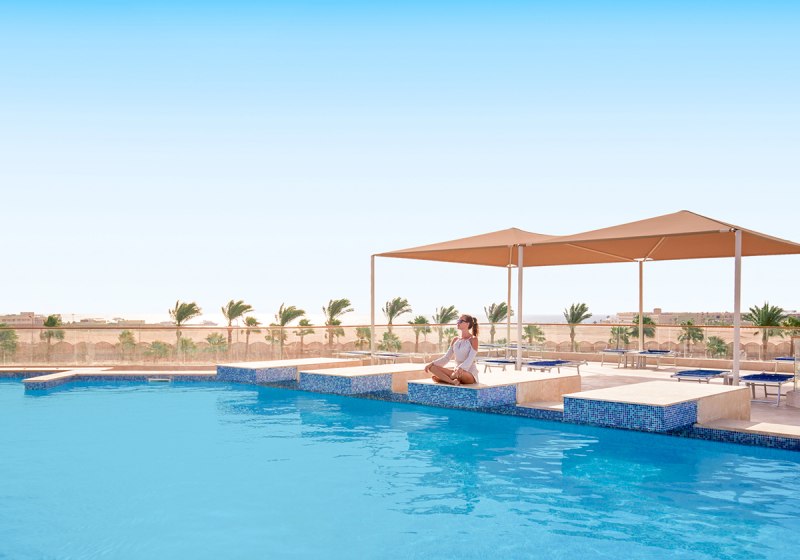 - Rooftop-Drinks: Red Sky Bar am Dachpool setzt abends einen stimmungsvollen Akzent.