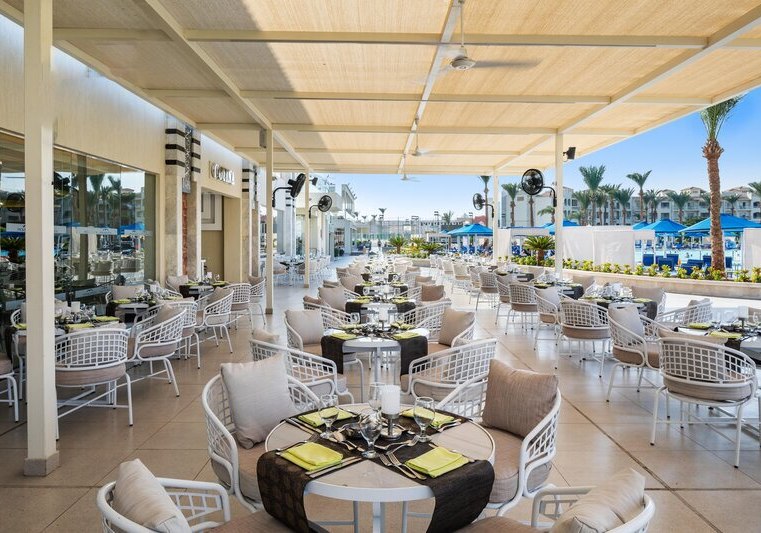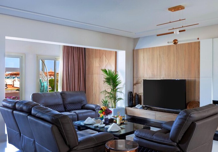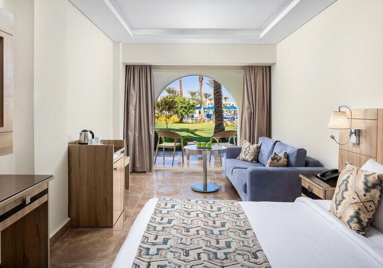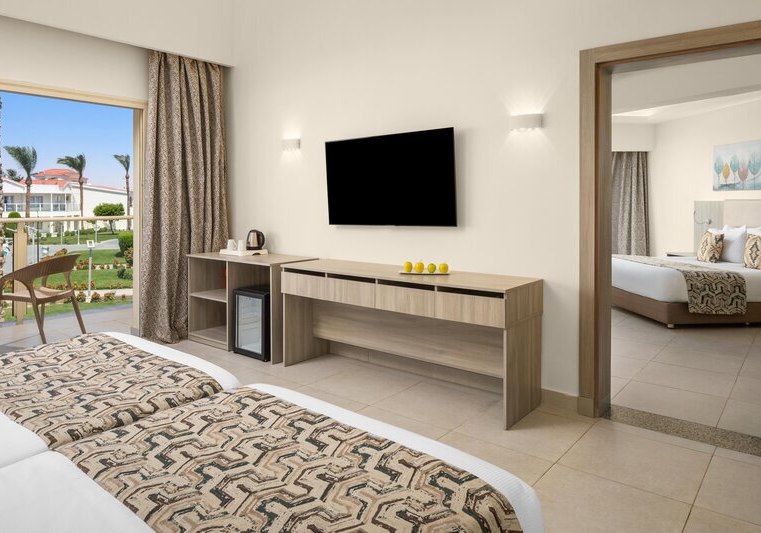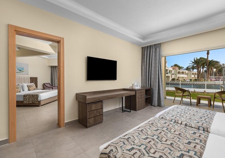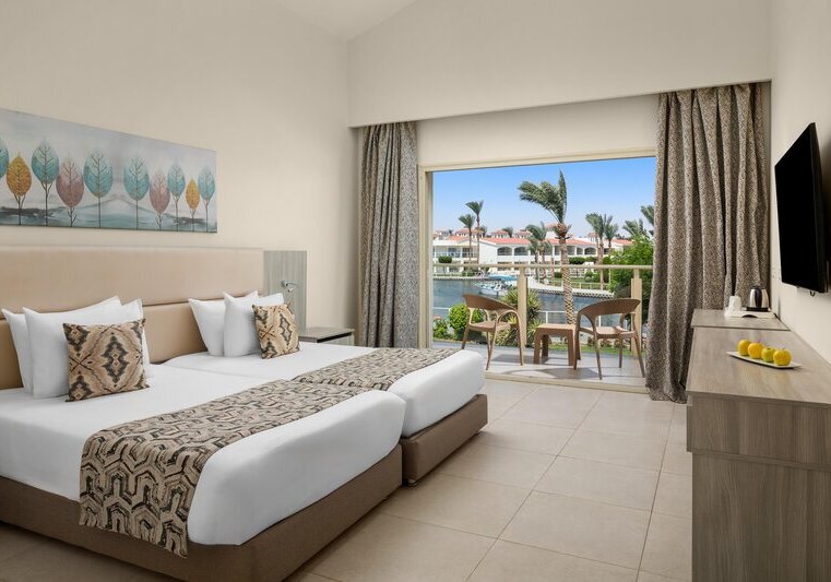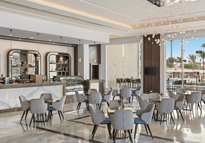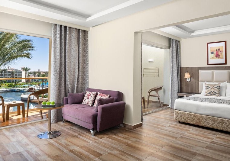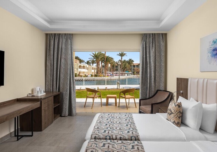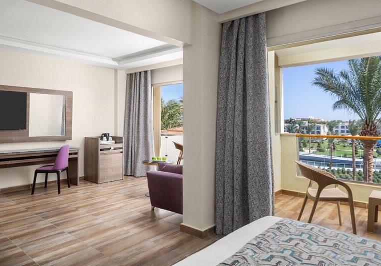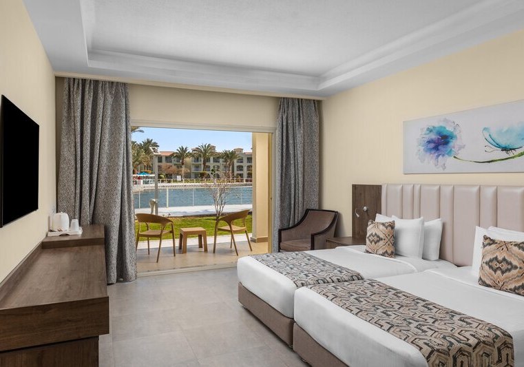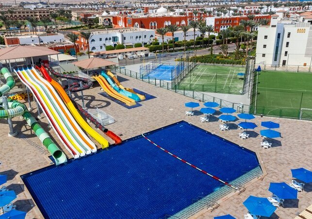 Pickalbatros Dana Beach Resort vereint direkte Lagunenstrandlage, sechs Buffetrestaurants und eine umfangreiche Pool- und Wasserparklandschaft. Mit Animation, Theater und Diskothek gestaltet Ihr Euren Abend planbar, während Miniclub und Mini-Disco Familienstruktur geben. Der Wellnessbereich mit Sauna, Dampfbad, Whirlpool und Spa rundet den Tag ruhig ab. Highlight: Direkter Strandzugang und kurze Wege zwischen Wasser, Restaurants und Zimmern.