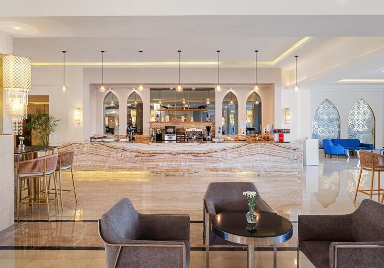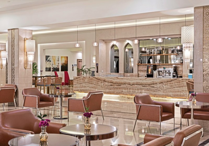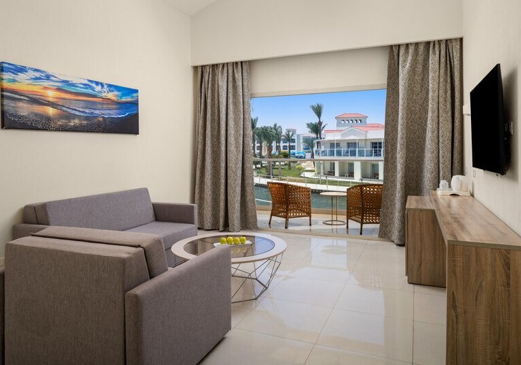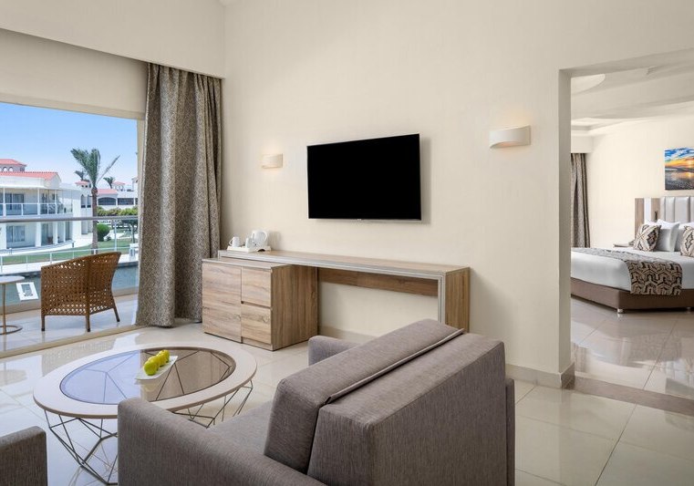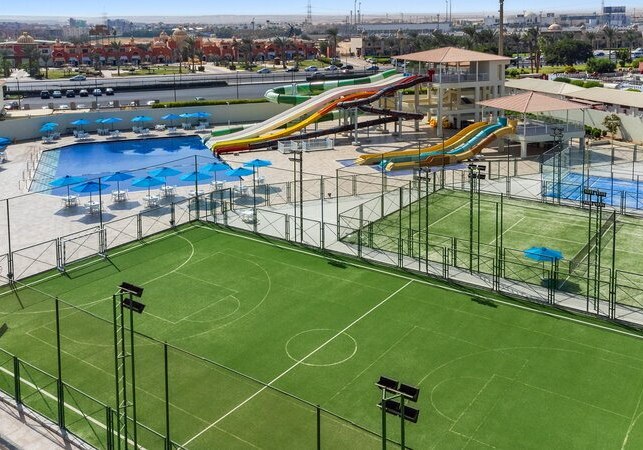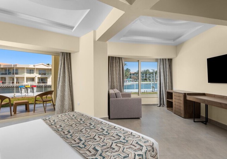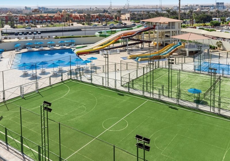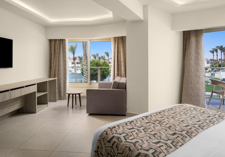 Im Pickalbatros Dana Beach Resort erwartet Euch ein weitläufiges Resort an einem Lagunensandstrand an der Sahl Hasheesh Road, geprägt von Wasserwegen, Gärten und großzügigen Ruhe- wie Aktivzonen. Ihr flaniert durch eine lebendige Anlage mit Empfangshalle, Lobbys und Shops, während Euch zuverlässiges WLAN in der gesamten Anlage begleitet. Die Atmosphäre wirkt strukturiert und gastfreundlich, mit klaren Bereichen für Erholung, Familienzeit und Sport. Highlight: Direkte Lagune mit Tretbooten und gepflegte Poollandschaft für entspannte Tage am Wasser.