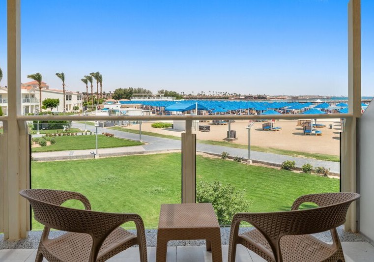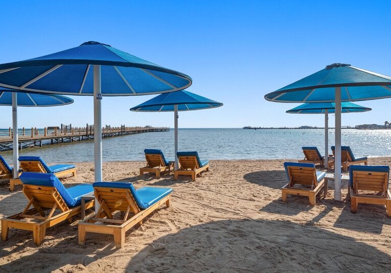 Ihr residiert an der Sahl Hasheesh Road in der südlichen Hotelzone von Hurghada, direkt am Lagunensandstrand – eine ruhige, breite Bühne für Strandtage mit klarer Ausrichtung aufs Wasser. Die Wege bleiben übersichtlich: Rund 10 Kilometer trennen Euch vom Flughafen Hurghada, etwa 18 Kilometer vom Zentrum; das nächste Krankenhaus liegt ungefähr 1 Kilometer entfernt. Der Strandbereich ist ausgestattet mit Liegestühlen, Sonnenschirmen und Strandbar, sodass Ihr den Tagesrhythmus zwischen Meer, Lagune und Gastronomie flexibel gestaltet. Einkaufsgelegenheiten und eine Bushaltestelle erreicht Ihr in etwa 500 Metern. Die Lage verbindet Erreichbarkeit und Rückzug an der Küste. Highlight: Direkte Strandlage mit Lagune und kurzer Distanz zum Flughafen für schnelle An- und Abreise.