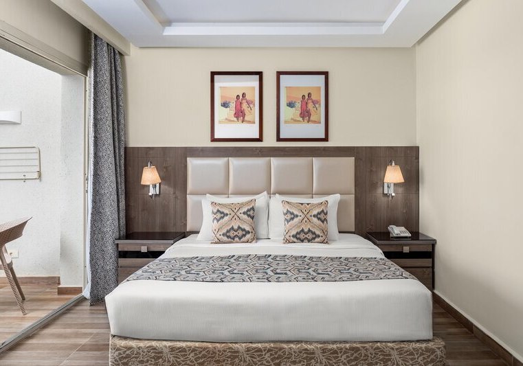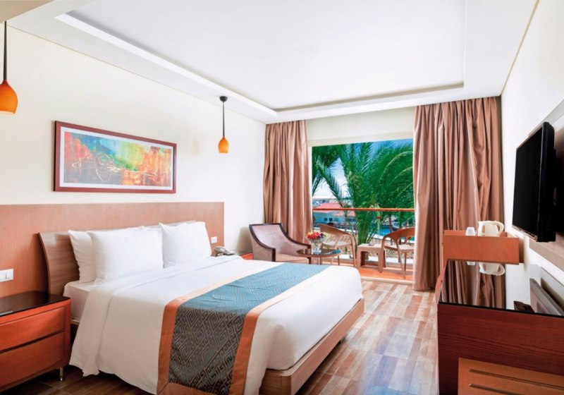 Die Zimmer sind funktional ausgestattet: Dusche oder Badewanne, WC, Föhn, Sat-TV, Klimaanlage, Telefon, Safe sowie Minibar und Wasserkocher bzw. Kaffee-/Teezubereiter. Balkon oder Terrasse öffnet den Blick je nach Lage auf Garten, Pool, See oder Meer. Schallisolierung, Schreibtisch und Fliesenboden unterstützen einen aufgeräumten Eindruck. Highlight: Klare Basis-Ausstattung mit Balkon oder Terrasse in allen Zimmern.