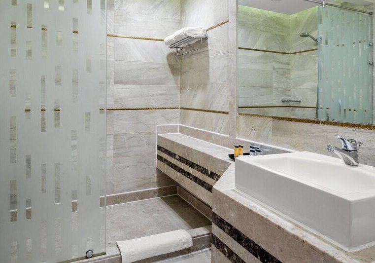 - Solide Basics: Klimaanlage, Safe, TV, Minibar und Wasserkocher sind vorhanden.