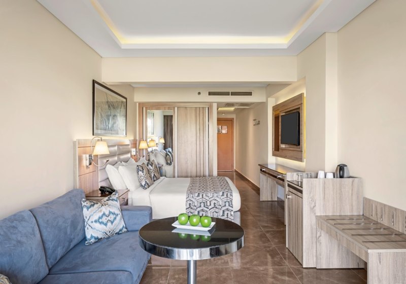 Mit 5-Sterne-Kategorie (offiziell) und 835 Zimmern, Baujahr 2004 und Renovierung 2019, verbindet das Haus Größe und Organisation. Ihr trefft auf ein vielseitiges Programm von Animation bis Theater und Diskothek, ergänzt durch Miniclub und Mini-Disco. Kulinarisch führen sechs Buffetrestaurants durch internationale Küchenwelten, Bars und Poolbar runden den Tag ab. Liegen, Sonnenschirme und Badetücher an Pool und Strand sind bereitgestellt. Highlight: Drei beheizbare Außenpools und Kinderwasserrutschen schaffen verlässliche Badefreude durch die Saison.