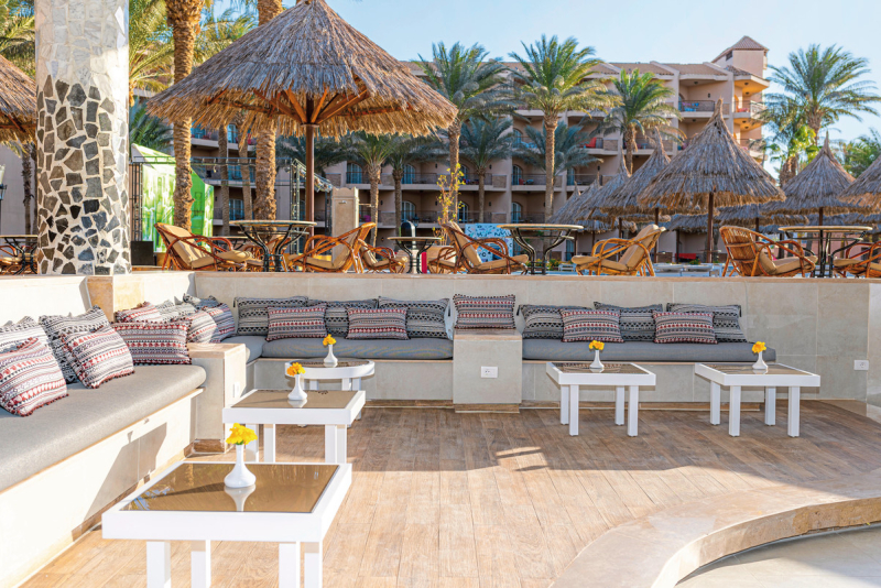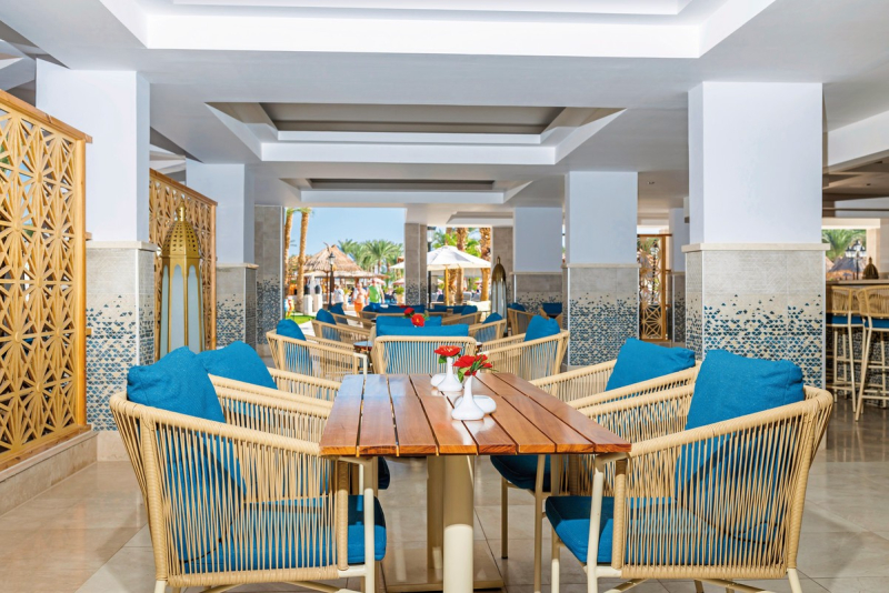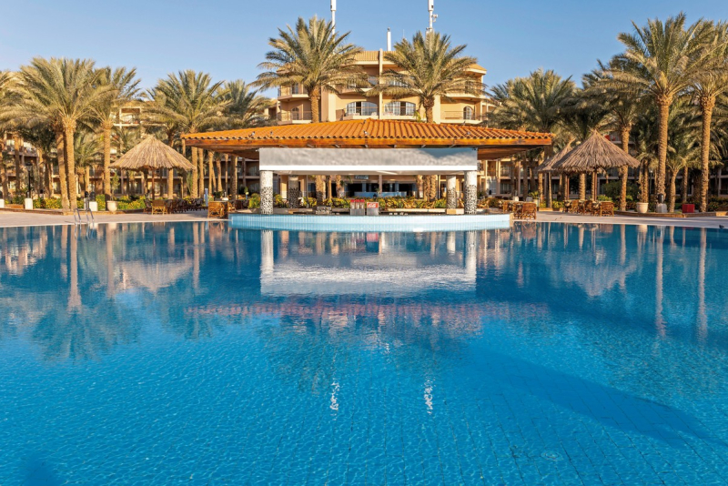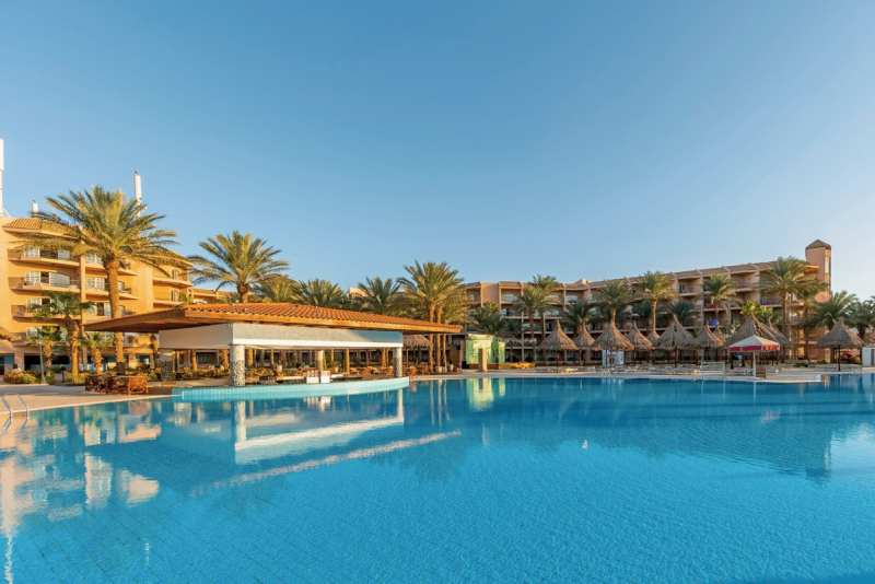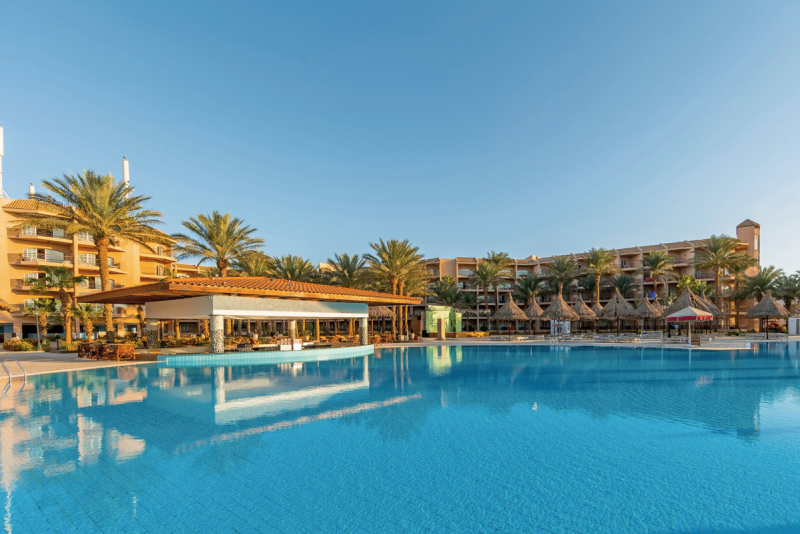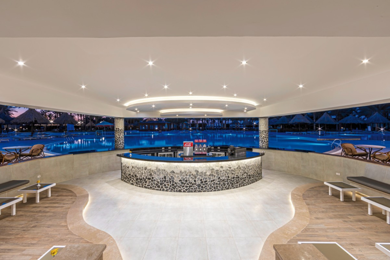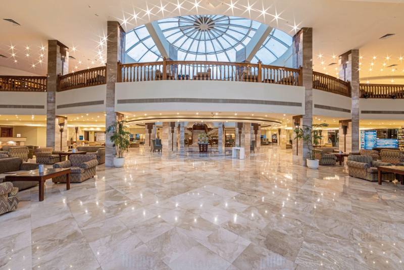 Auch in gastronomischer Hinsicht lässt das Hotel keine Wünsche offen: Neben den drei Hauptmahlzeiten - Frühstück, Mittag- und Abendessen - sind auch alkoholfreie Getränke im Angebot enthalten. Verschiedene Bars und Cafés ergänzen das kulinarische Angebot.Ausstattung