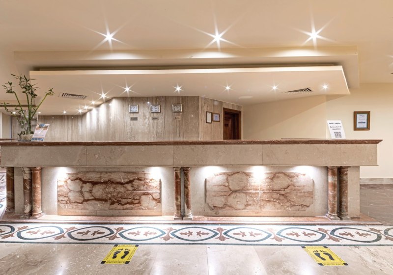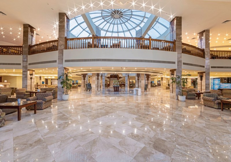 Die öffentlichen Bereiche sind klar strukturiert: 24-Stunden-Rezeption, Concierge und ein Empfangsbereich erleichtern die Orientierung, Läden wie Minimarkt, Souvenirshop und Friseur decken Alltagswünsche ab. In der Lobby steht WLAN bereit, Aufzüge verbinden die Ebenen. Die Gartenanlage führt Euch zu Pools, Sonnenterrassen und direkt weiter zum Strand. Highlight: Servicekette von Rezeption bis Concierge mit kurzen Wegen.