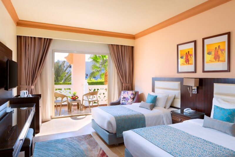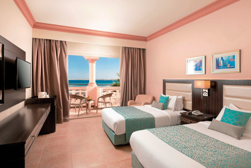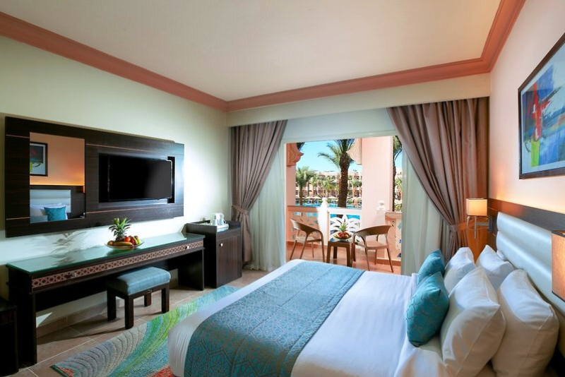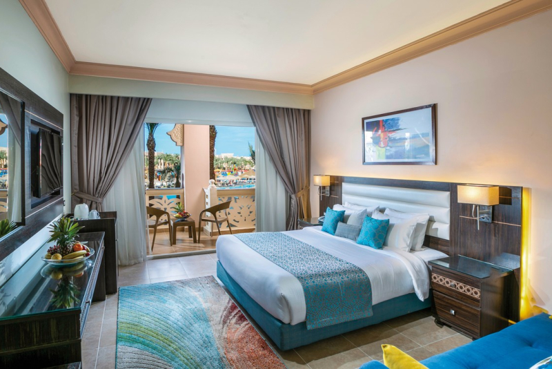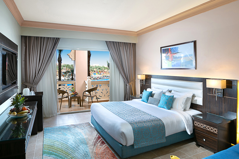 Die komfortablen und stilvoll eingerichteten Zimmer im Pickalbatros Palace Resort - Hurghada sind etwa 36 qm groß und verfügen über Annehmlichkeiten wie Nichtraucherzimmer, Dusche/WC, Flachbildschirm, Föhn, Kaffee-/Teezubereiter, Sat.-TV, Telefon und Balkon oder Terrasse. Auch ein Safe und eine täglich aufgefüllte Minibar sind vorhanden. Ein Roomservice steht rund um die Uhr gegen Gebühr zur Verfügung.