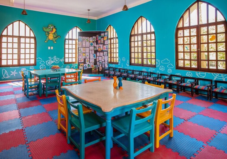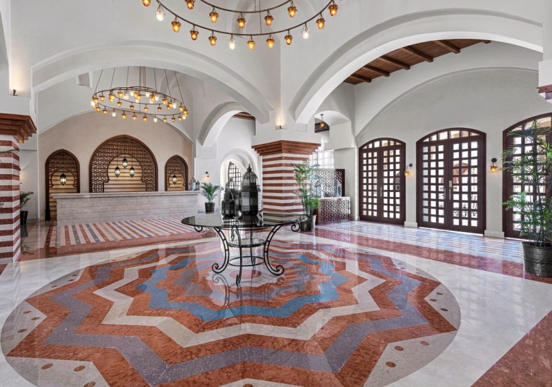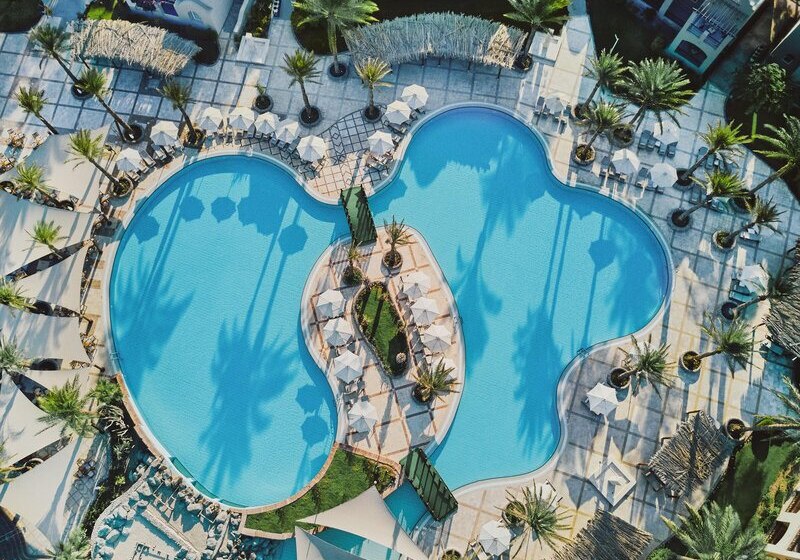 Die Anlage ist durchdacht organisiert: Empfangshalle mit Lobby und Rezeption, Geschäfte und Boutiquen, Bibliotheken sowie medizinische Betreuung vor Ort. Zwei Swimmingpools – einer im Winter beheizt – plus Kinderbecken mit Wasserfall und Sonnenterrasse strukturieren den Außenbereich. Am Strand und am Pool nutzt Ihr Liegen und Sonnenschirme bequem und ohne Umwege.