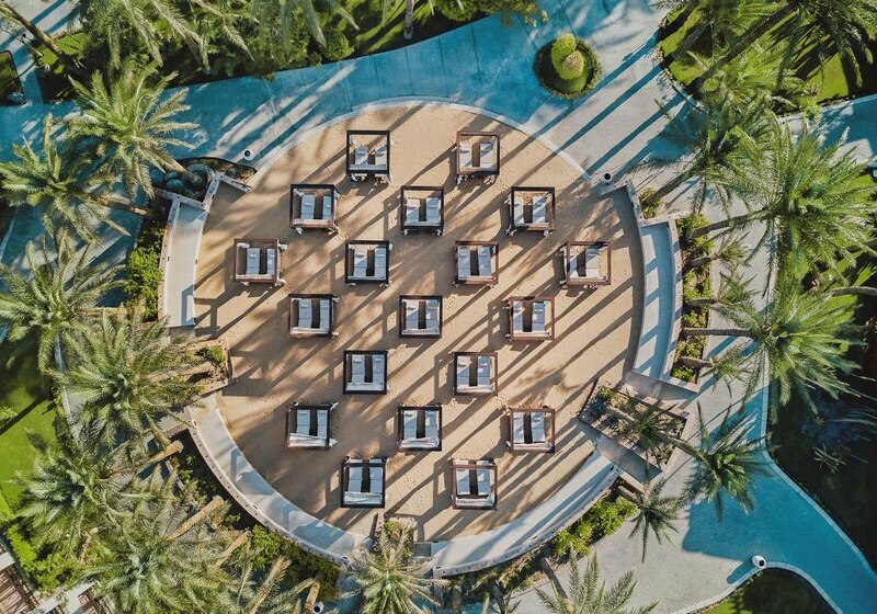 - Strandsetup: Liegen und Schirme am Strand und am Pool bereitgestellt.