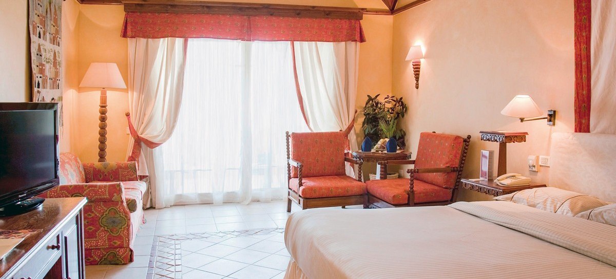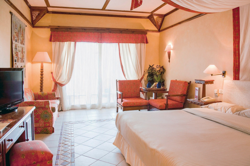 Ihr wohnt in Doppelzimmern Deluxe, Juniorsuiten oder Familienoptionen. Alle Kategorien bieten Dusche/WC, Haartrockner, Klimaanlage, Safe, Sat-TV und Minibar (kostenpflichtig). Ein Balkon oder eine Terrasse öffnet den Blick in die Anlage; zahlreiche Einheiten bieten Poolblick. Einzel- oder Doppelbetten stehen bereit, Babybetten gibt es auf Anfrage.