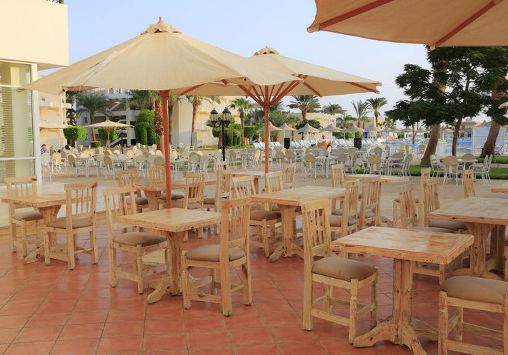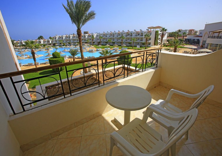 Die Lage ist ein starkes Argument: direkt am Strand der Makadi Bay, an einer Promenade mit Restaurants und Bars. Der Flughafen Hurghada liegt etwa 30 Kilometer entfernt, die nächste Ortschaft rund 35 Kilometer. Damit erreicht Ihr Ausflugsziele bequem, ohne die ruhige Strandposition aufzugeben.