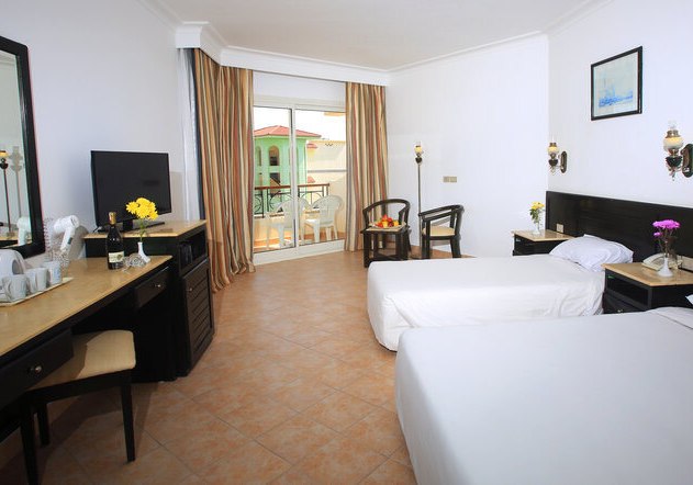 Die Zimmer sind funktional konzipiert und auf angenehme Aufenthalte ausgerichtet. Doppelzimmer bieten etwa 22 Quadratmeter, Familienzimmer rund 30 Quadratmeter. King-Size- oder Twin-Betten, Balkon oder Terrasse sowie Klimaanlage schaffen verlässlichen Komfort. Verfügbare Ausblicke reichen je nach Kategorie von Garten über Pool und seitliches Meer bis zum Meerblick.