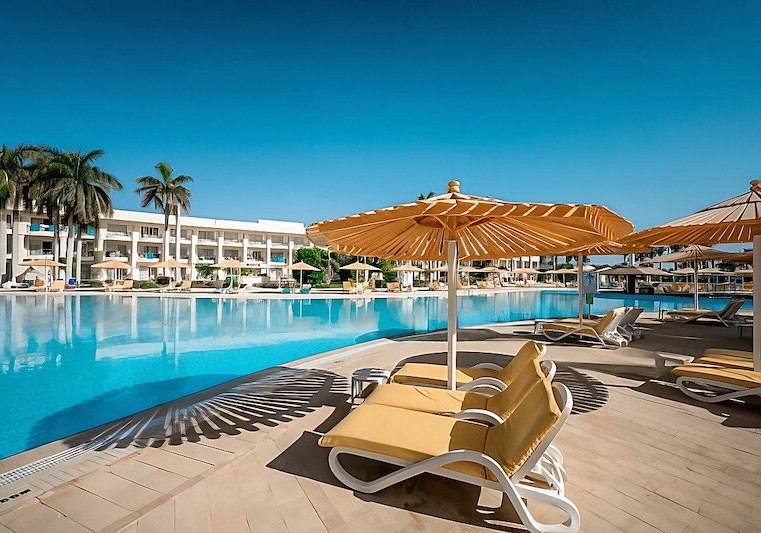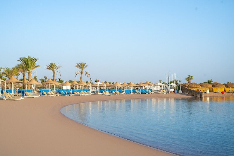 Im Jaz Royal Palmariva wohnt Ihr direkt an der Makadi Bay, mit Privatstrand und Zugang zur Makadi-Promenade. Die weitläufige Resort-Atmosphäre wirkt entspannt und strukturiert: drei Pools, darunter ein Adults-Only-Bereich und ein im Winter beheizbarer Pool, klare Wege, viel Platz für ruhige Stunden oder geselliges Zusammensein. WLAN nutzt Ihr in der Lobby und allen öffentlichen Bereichen inklusive.