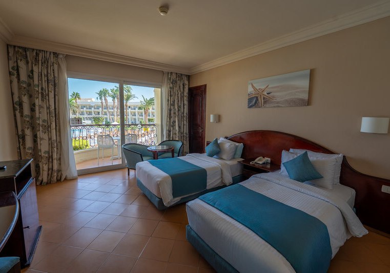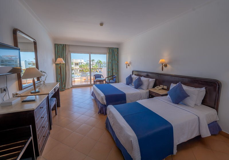 In 505 Zimmern wohnt Ihr funktional und strandnah. Die Superior Doppelzimmer (ca. 24 m²) bieten King-Size- oder Twin-Betten, Dusche, Balkon, Klimaanlage, Sat-TV, Safe, Telefon sowie Kaffee-/Teezubereiter; Minibar ist gegen Gebühr verfügbar. Optional bucht Ihr Poolblick oder seitlichen Meerblick für klarere Ausrichtung.