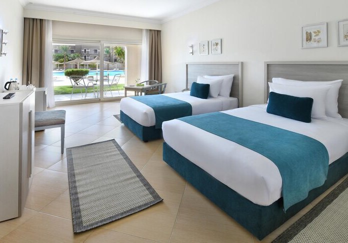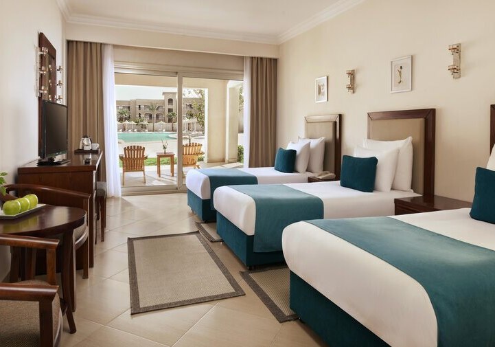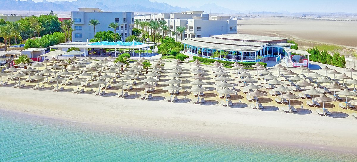 Das Resort liegt an der Hurghada-Safaga Road, km 49, direkt am Sandstrand des Roten Meeres. Die Lage verknüpft entspannte Strandtage mit praktikabler Anbindung: Zum Flughafen Hurghada sind es etwa 45 Kilometer, ins Zentrum von Safaga rund zehn Minuten Fahrzeit. Die Atmosphäre ist maritim und klar strukturiert: Strandbar, Liegestühle und Umkleidekabinen erleichtern Euren Badealltag. Vor Ort öffnet das Tauch- und Wassersportcenter die Tür zum Meer, während die Garten- und Poolzonen als Rückzugsorte dienen. Mit hoteleigenem Shuttleservice, Tour-Desk und ATM auf dem Gelände bleibt Ihr mobil und unabhängig. Diese Positionierung macht das Haus attraktiv für Strandreisende, die kurze Wege zum Wasser wünschen, aber nicht auf Ausflüge in die Umgebung verzichten wollen. Highlight: Direkte Strandlage an der Hurghada-Safaga Road mit schneller Anbindung nach Safaga.