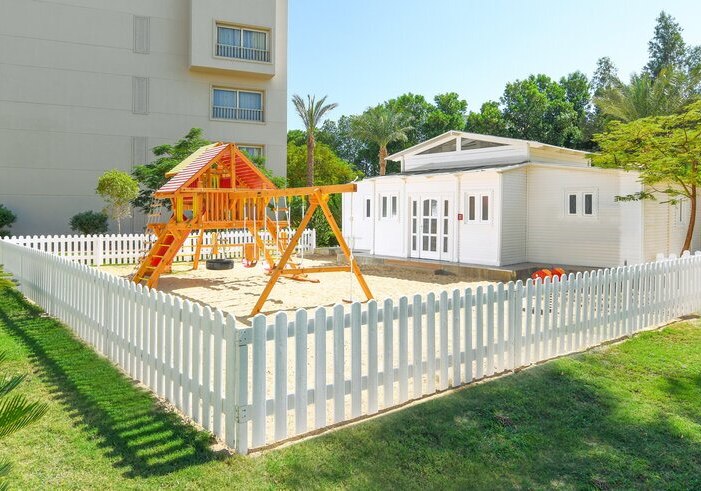 Die Infrastruktur ist umfassend gedacht: zwei Außenpools, davon im Winter beheizbar, und zwei Wasserrutschen bilden das Zentrum der Anlage. Kostenfreies WLAN in den öffentlichen Bereichen hält Euch verbunden. Mit Rezeption, Empfangsbereich, Lobbybar, Shops, Supermarkt, Friseur und Geldautomat erledigt Ihr Wege bequem im Resort.