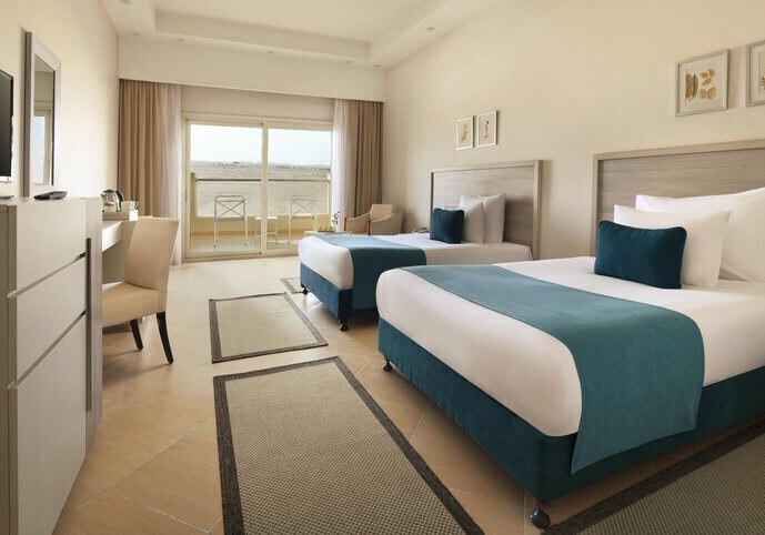 Die 433 Zimmer sind geräumig konzipiert und praktisch ausgestattet. Zur Grundausstattung gehören Dusche, WC, Klimaanlage, Safe, Sat-TV, Telefon, Kaffee- und Teezubereiter sowie Minibar (gegen Gebühr; Wasser täglich inklusive). Alle Einheiten verfügen über Balkon oder Terrasse, was Euren Tagesablauf zwischen drinnen und draussen flexibel macht.