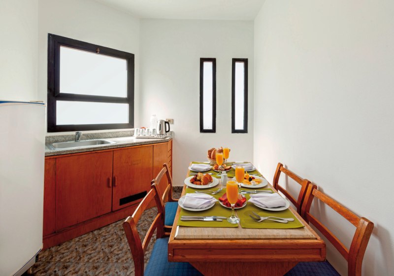 Die Bungalows setzen auf Platz und klare Aufteilung: Varianten mit einem Schlafzimmer (ca. 70 m²) oder zwei Schlafzimmern (ca. 96 m²) verfügen über separaten Wohn-Schlafraum, zwei Bäder in der größeren Kategorie und Kaffee-/Teezubereiter. Je nach Lage blickt Ihr auf Garten oder Pool, was die Wege zwischen Wohnen, Wasser und Strand angenehm kurz hält.
