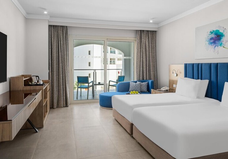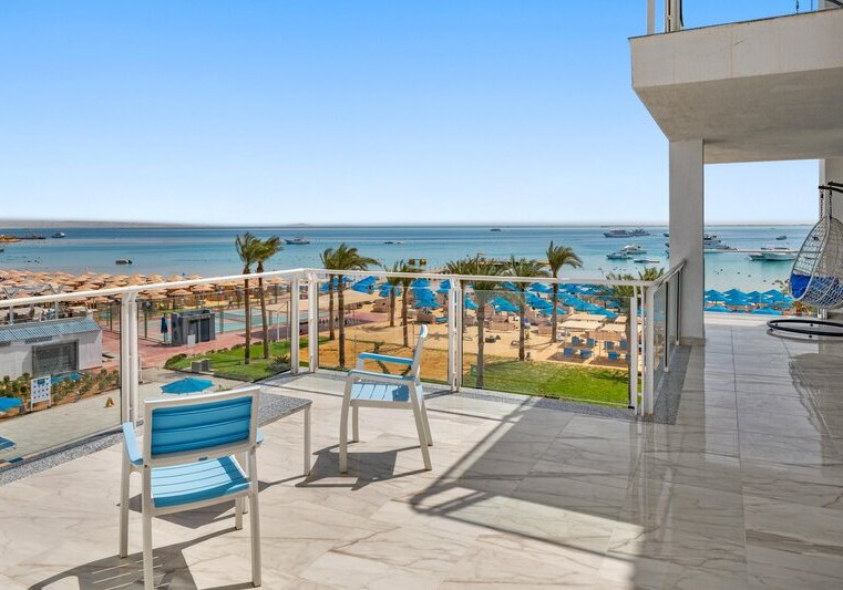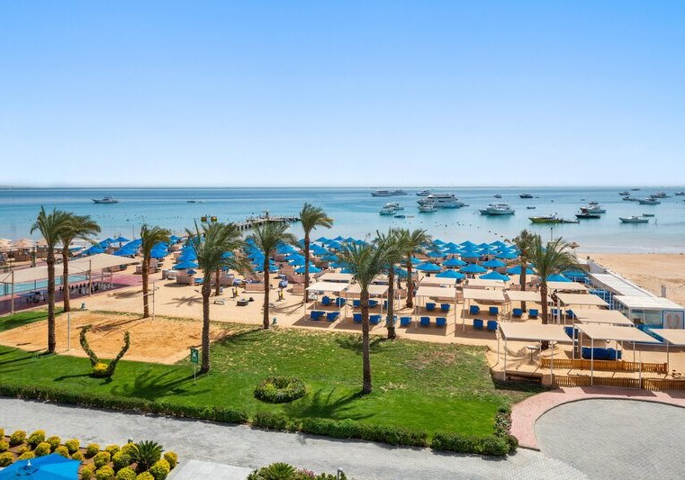Ihr wohnt in Hurghada direkt am Roten Meer mit eigenem Strandabschnitt. Eine Promenade schließt an das Hotel an, ideal für entspannte Spaziergänge am Wasser. Das Zentrum liegt etwa 5 km entfernt, der Flughafen rund 3 km – beides schnell erreichbar. Highlight: Direkte Strandlage mit sehr kurzer Anreisezeit vom Flughafen.
