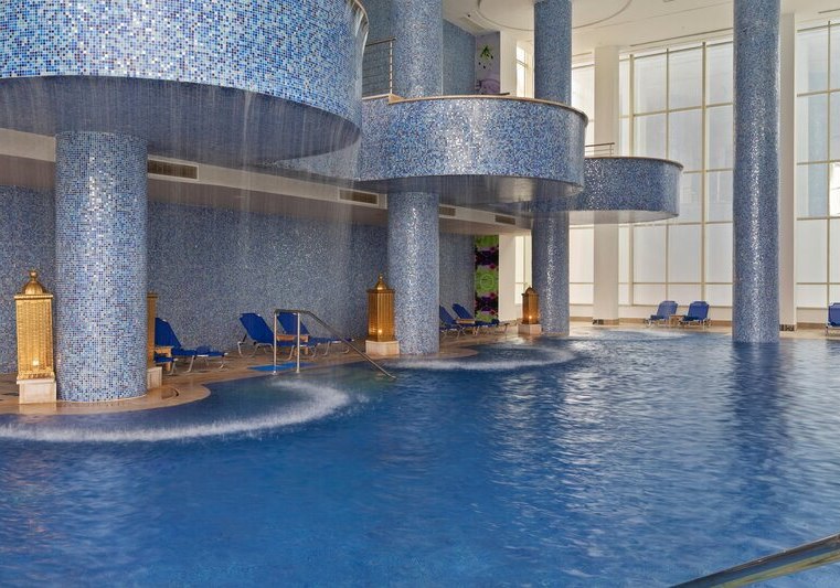 - Vielseitige Pools: Außen-, Relax- und beheizter Indoorpool ergänzen das Spa-Center stimmig.