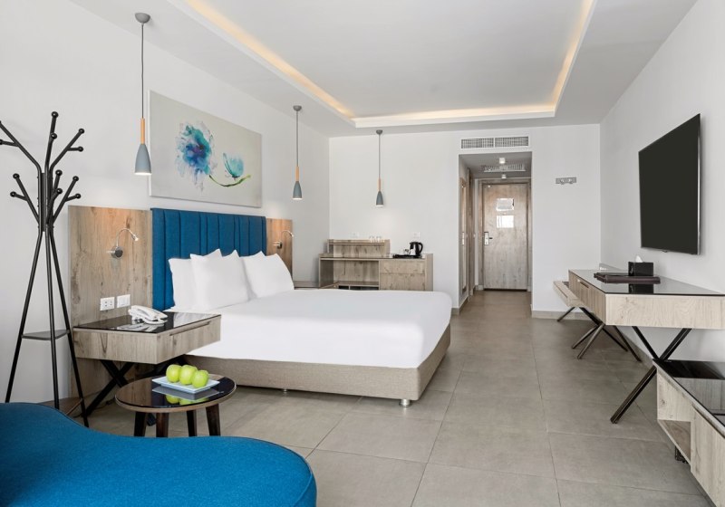 Je nach Lage blickt Ihr in den Garten-, Pool- oder Meeresbereich. Schallisolierung und Fliesenboden sorgen für ruhige, pflegeleichte Räume. Einzel-, Twin-, Queen- oder Kingsize-Betten stehen je nach Kategorie zur Verfügung. Highlight: Ausblickvarianten bis hin zum Meer für Euren persönlichen Fokus.