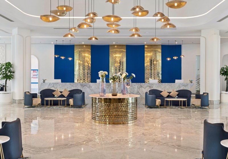 Im Pickalbatros Blu Spa Resort erwartet Euch ein adults-only Refugium ab 16 Jahren direkt am Roten Meer. Die Architektur öffnet sich zum eigenen Strand, Wege führen an ruhigen Pools vorbei, in der Lobby verbindet kostenloses WLAN die Bereiche. Ihr bewegt Euch zwischen entspanntem Strandtag und abendlicher Bühne mit klarer Struktur. Highlight: Adults-only-Resort mit eigenem Strand und klarer Ausrichtung.