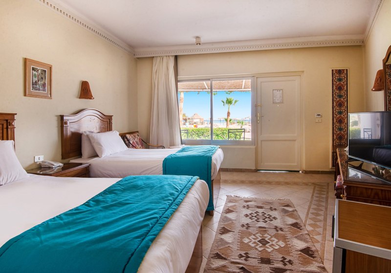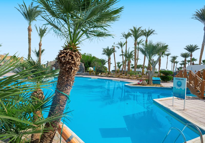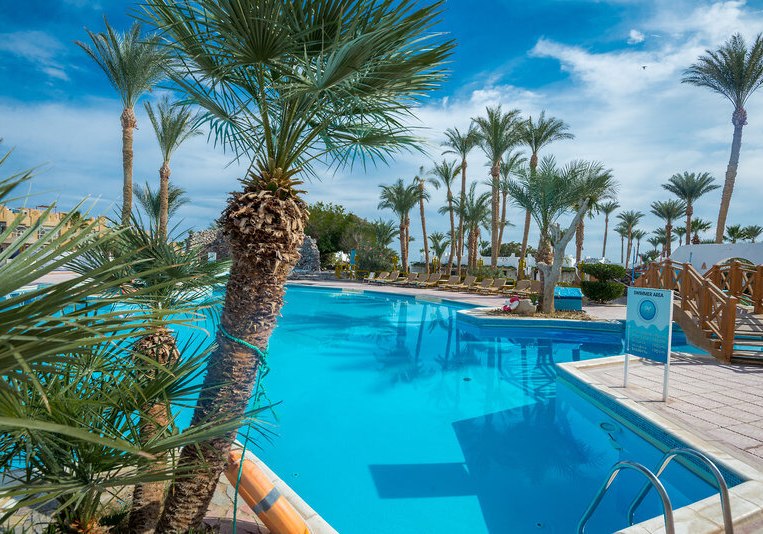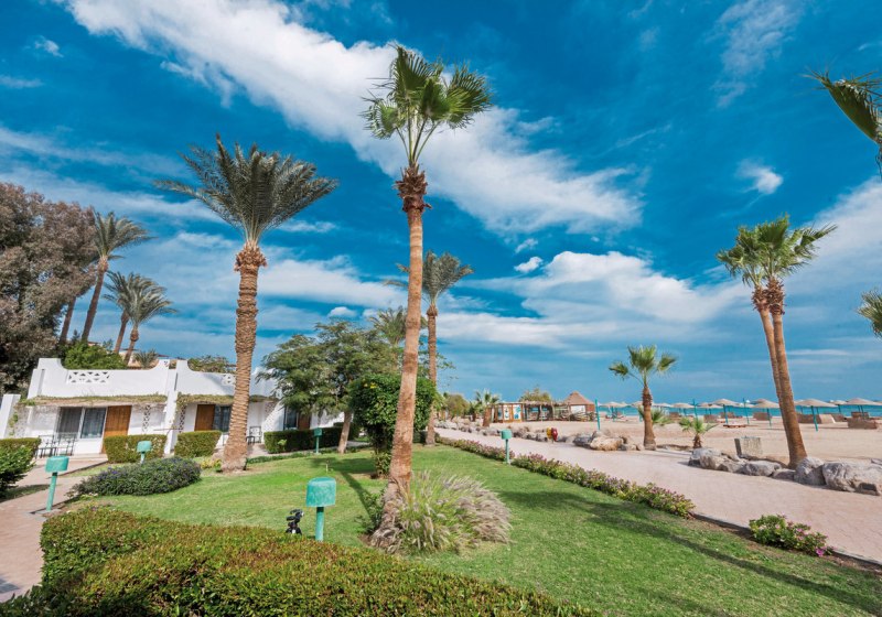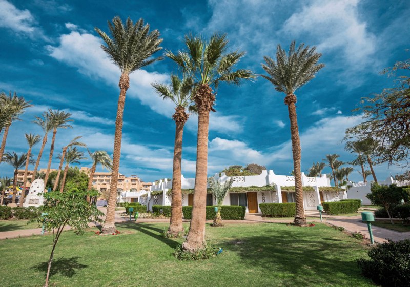 Ihr wohnt in Safaga an einem hoteleigenen, etwa 700 Meter langen Sandstrand, der flach ins Rote Meer ausläuft. Bis zum Ortszentrum Safaga sind es rund 8 Kilometer. Der Flughafen Hurghada liegt etwa 45 Kilometer entfernt, das Stadtzentrum Hurghada ca. 50 Kilometer. Am Strand stehen Liegestühle, Sonnenschirme und eine Strandbar bereit.