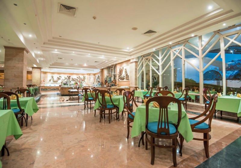 Im Buffetrestaurant esst Ihr mit Blick nach draußen; die Terrasse erweitert den Raum ins Freie. Themenvielfalt am Buffet und ein separates Kinderbuffet erleichtern die Auswahl für Familien. Tagsüber versorgen Euch Snackbar und Coffeeshop, abends setzt die Shisha Bar einen stimmungsvollen Akzent.
