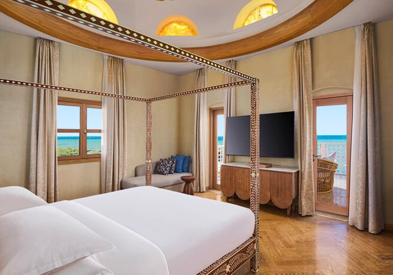 Im Sheraton Miramar Resort El Gouna wohnt Ihr auf neun Inseln, verbunden durch filigrane Holzbrücken – mit direktem Zugang zu Lagunen und Sandstrand. Der von Michael Graves entworfene Stil prägt die weiten Wege, die ruhigen Wasserflächen und die klar strukturierte Anlage. Familien, Paare, Aktive und Golfspielende finden hier Raum, der sich offen und zugleich geborgen anfühlt. Highlight: Architekten-Resort auf Inseln mit Lagunen und Sandstrand, stimmig komponiert.