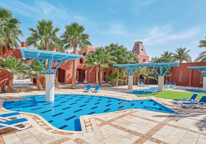 Liegen, Auflagen, Sonnenschirme und Badetücher stehen an Pool und Strand inklusive bereit. WLAN ist in der gesamten Anlage kostenfrei, Highspeed gegen Gebühr. Kinderpools und Spielplatz sind vorhanden. Zimmerservice und Wäscheservice nutzt Ihr gegen Gebühr; Visa und Mastercard werden akzeptiert. Ein Shuttle per Boot und Bus verbindet Euch kostenpflichtig innerhalb El Gouna.