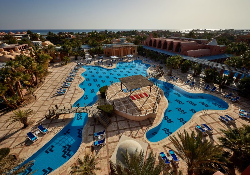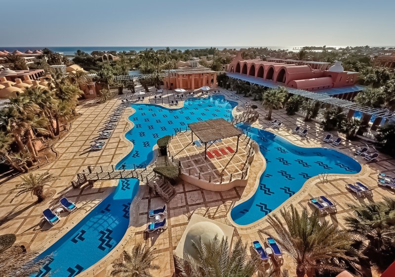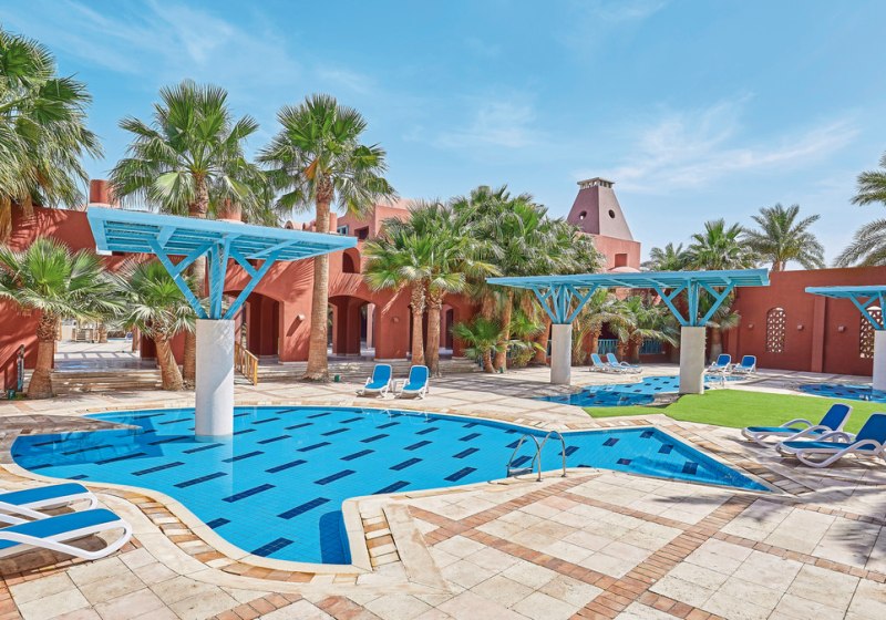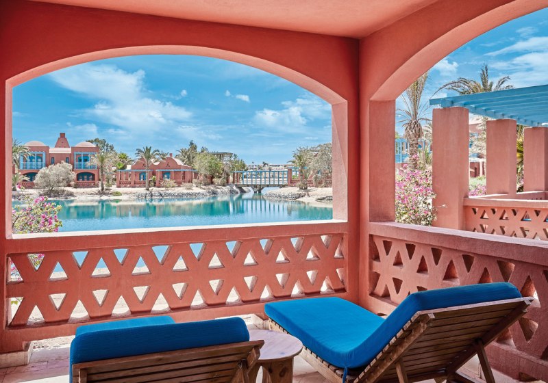 Ihr bewegt Euch über sonnige Terrassen, vorbei an beheizbaren Pools, zu Bars und Restaurants mit Blick auf Wasser und Wege. WLAN nutzt Ihr in der gesamten Anlage kostenfrei, Highspeed gegen Gebühr. Der Boot- und Bus-Shuttle bringt Euch innerhalb El Gounas (gegen Gebühr) bequem weiter. So entsteht ein Aufenthalt, der strukturiert wirkt und Eure Tage klar gliedert – vom ersten Kaffee bis zum letzten Klang der Livemusik.