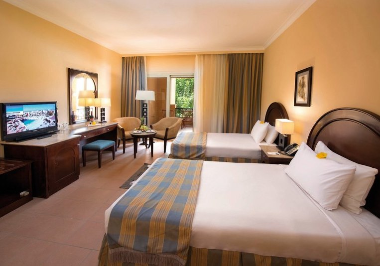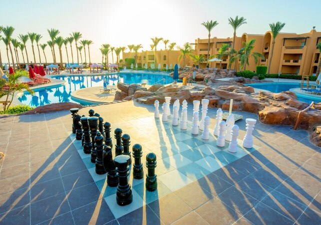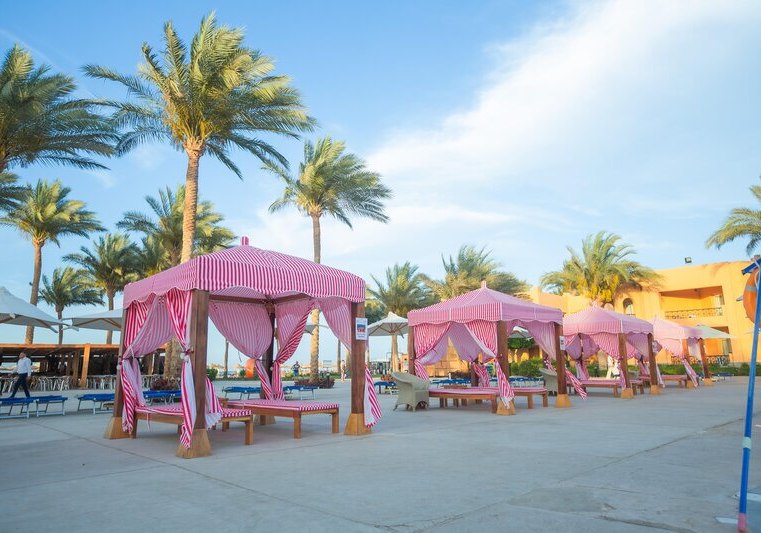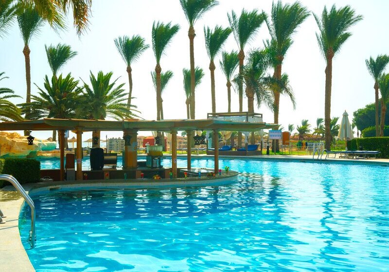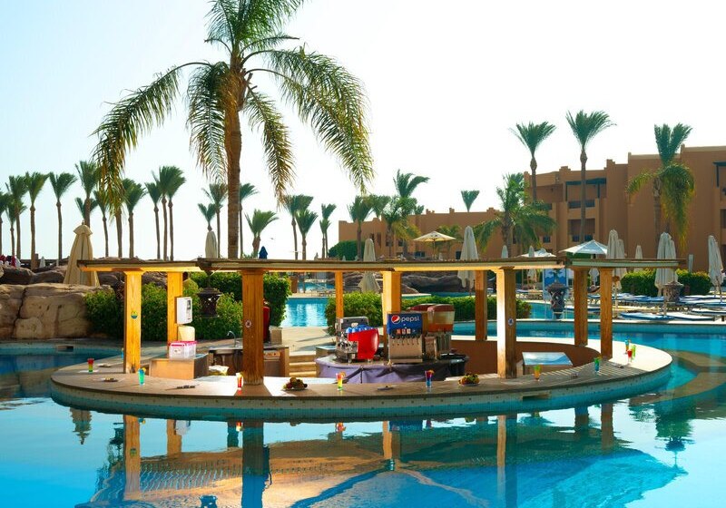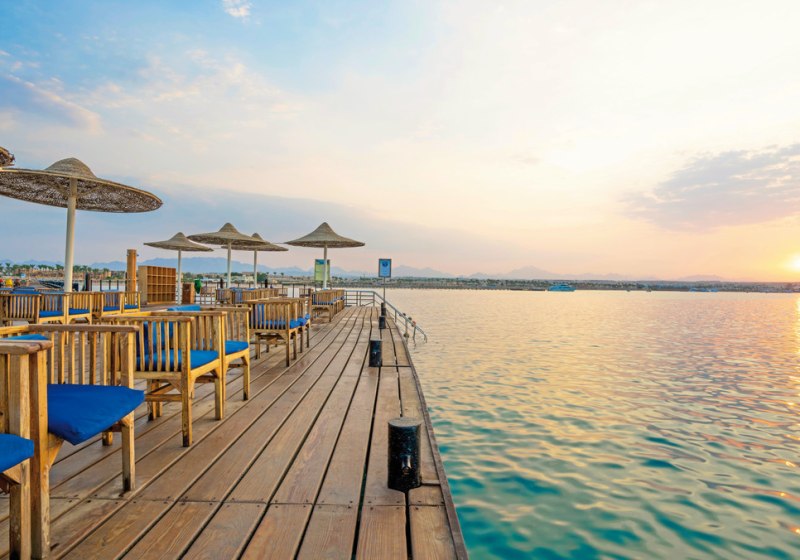 Im Stella Beach Resort & Spa wohnt Ihr direkt an der Makadi Bay mit eigenem Hausriff. Fünf Pools, ein langer Badesteg und weitläufige Gartenbereiche geben Eurem Tag eine klare Struktur: erst Meer, dann Pool, später Show oder Livemusik. Die Stimmung wirkt entspannt, die Wege sind übersichtlich, die Gemeinschaftsbereiche gut organisiert.